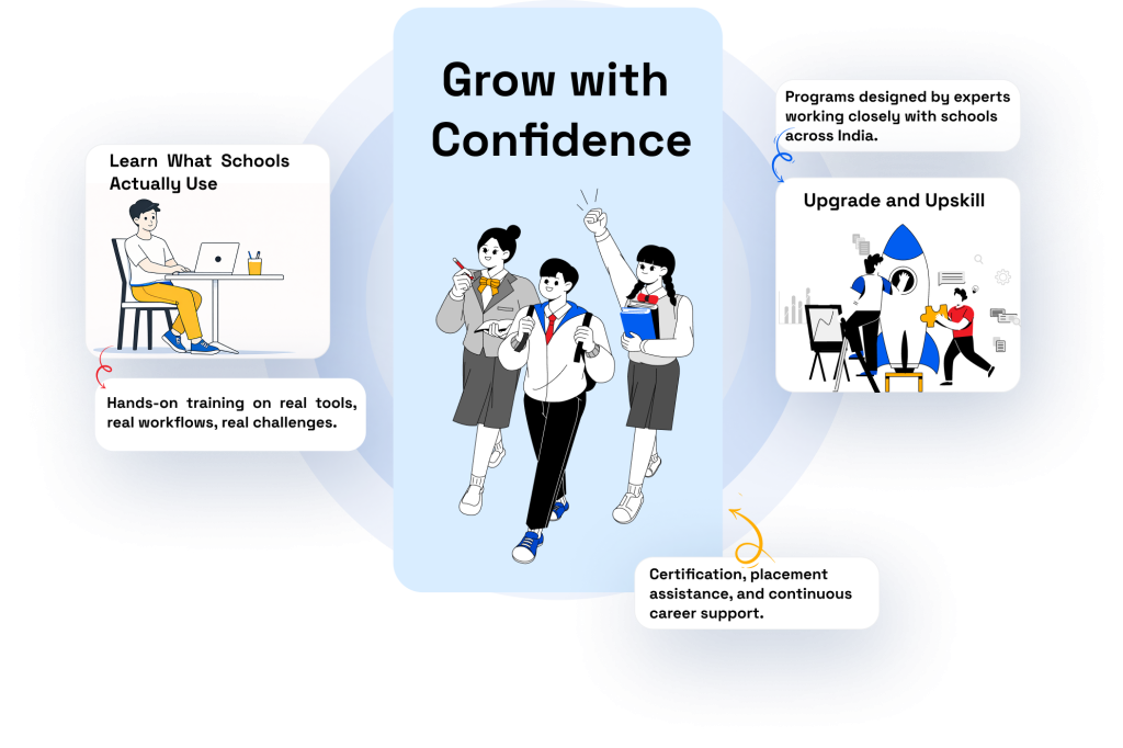 Our programs combine practical learning, real-school scenarios, and placement support to help learners grow confidently in the education ecosystem.